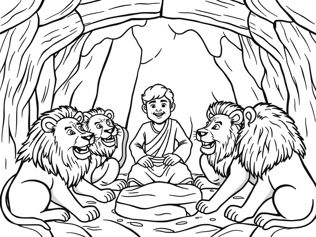 Coloring page of Daniel in the Lion’s Den